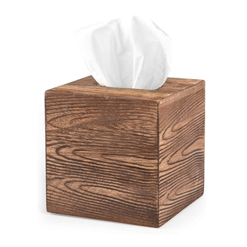 Rustik kahverengi dekoratif doku kutusu kapağı kare yemek masası dekorasyon için kağıt peçete kutusu özel ahşap doku kutusu
